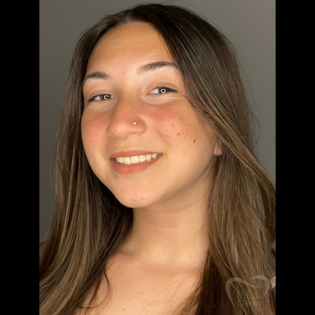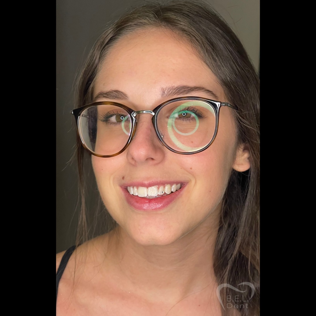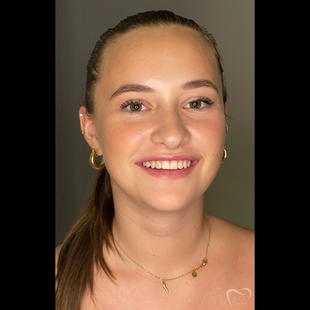 La paziente ha eseguito una ricostruzione estetica degli incisivi, correggendo irregolarità di forma e piccole usure dello smalto. Con compositi estetici è stata ripristinata la simmetria, la naturale traslucenza e l’armonia del sorriso. Un risultato delicato, naturale e molto pulito.