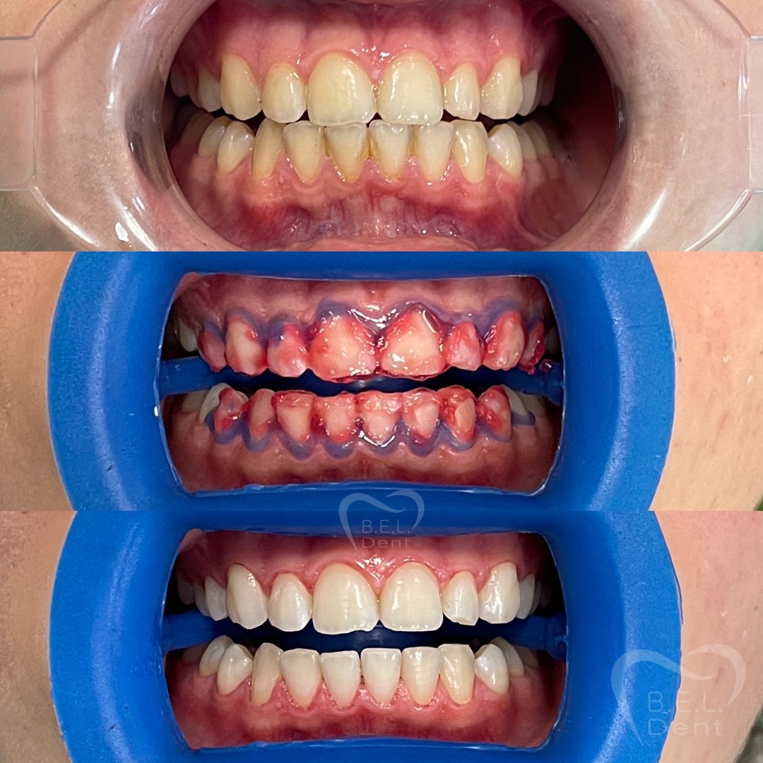 Il paziente ha effettuato una seduta di detartrasi professionale per rimuovere tartaro e placca. I risultati prima e dopo mostrano un miglioramento evidente nella pulizia e nell'estetica dentale